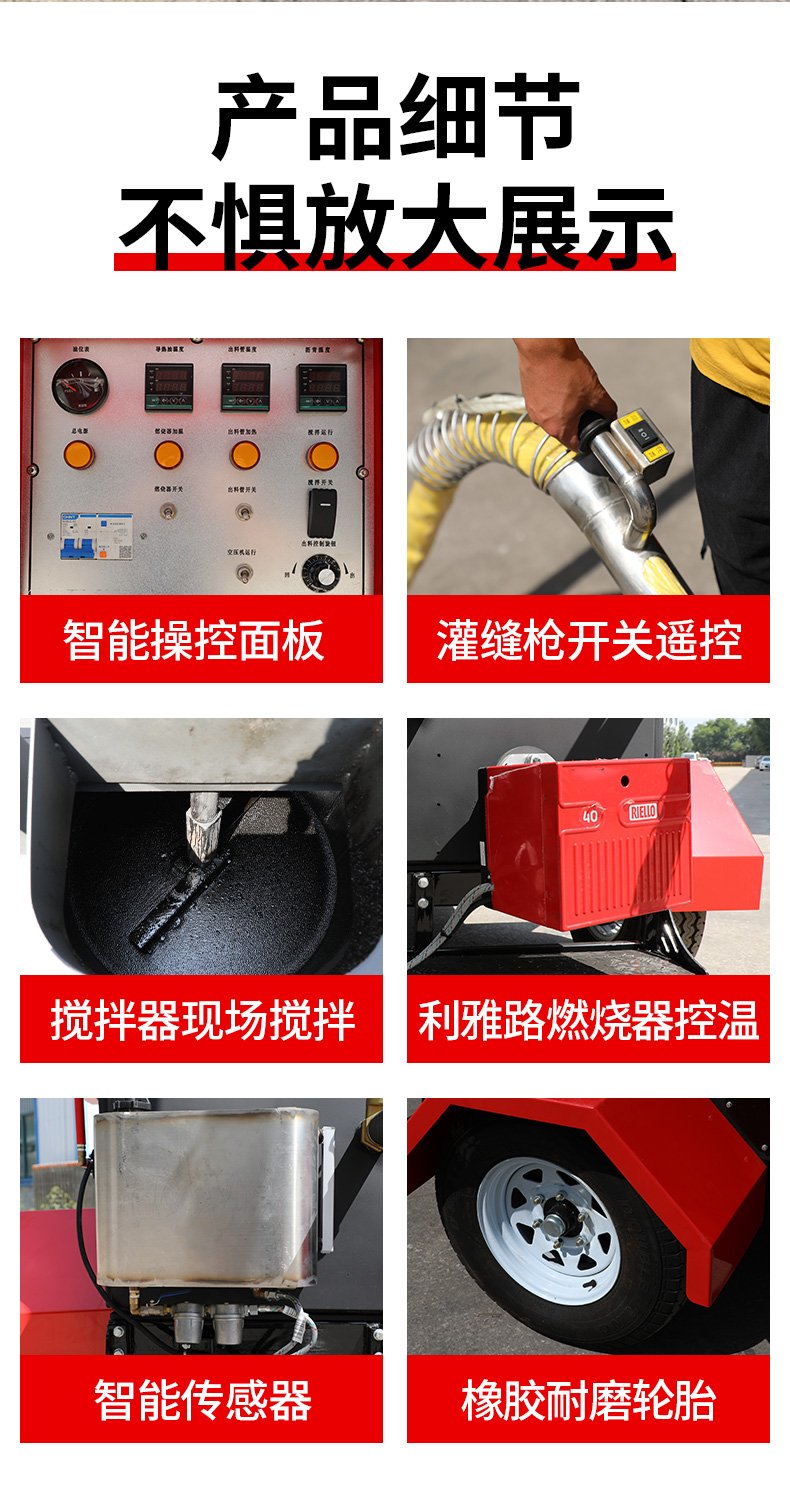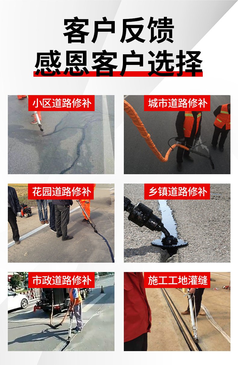 主要功能:通過一根單獨(dú)的加熱軟管將加熱融化后的橡膠瀝青基密封材料連續(xù)注入清理過的縫隙完成裂縫病害密封處理。輔助灌縫設(shè)備完成裂縫密封的設(shè)備有(開槽機(jī)、熱風(fēng)槍),密封材料主要是瀝青基橡膠密封膠。